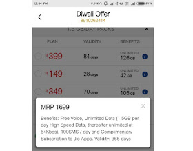 The new Rs. 1,699 plan also offers a complimentary subscription to Jio’s suite of apps. As for the 100% cashback benefit, one can only avail it if the recharge is done between October 18 and November 30. The cashback will be awarded in the form of three coupons worth Rs. 500 each and one Rs. 200 coupon, which can be redeemed at Reliance Digital or Reliance Digital Xpress Mini stores after making a minimum transaction of Rs. 5,000.